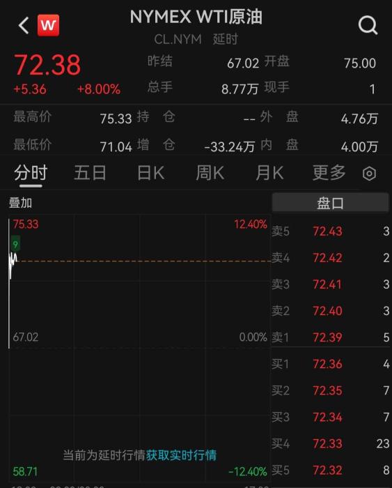 国际油价大幅高开