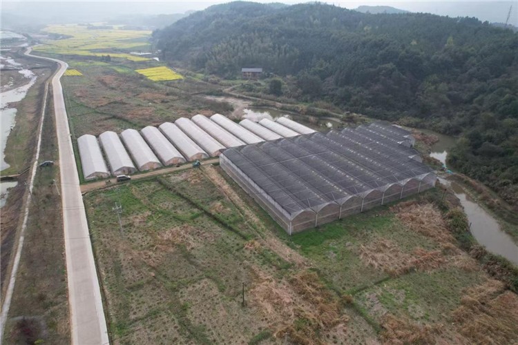 上图为资兴市白廊镇龙溪村智能连体温室大棚现场