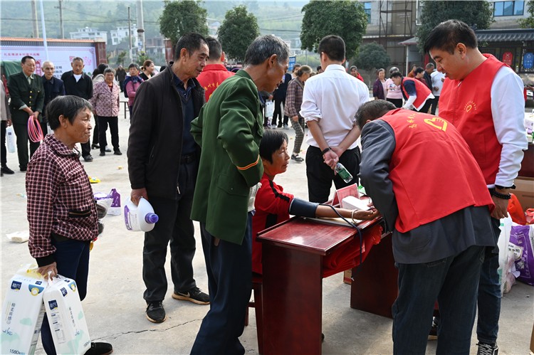 活动现场还设置了健康服务点,村医为老人们测量血压,解答健康问题,并提醒日常注意事项。