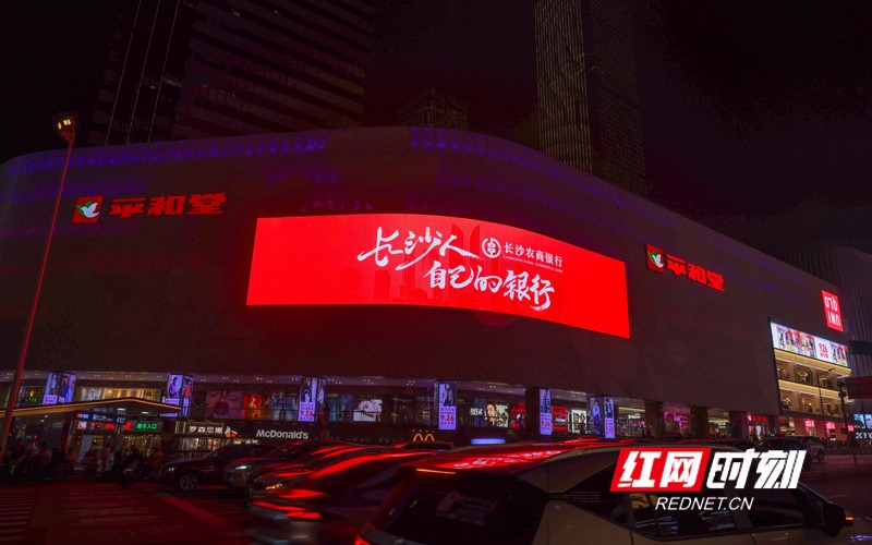 长沙农商银行主题海报亮相长沙五一广场平和堂LED屏。