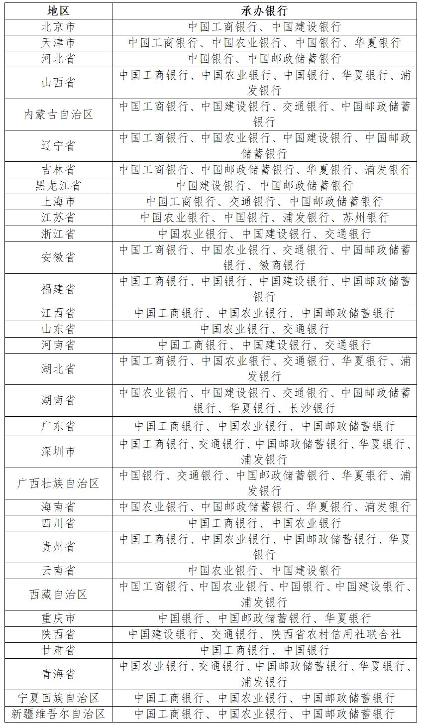 中国工商银行、中国农业银行、中国银行、中国建设银行、交通银行、中国邮政储蓄银行、华夏银行、浦发银行、苏州银行、徽商银行、长沙银行、陕西省农村信用社联合社(以下统称承办银行)共同承担中国京剧艺术普通纪念币的预约兑换工作。各地区具体安排如下: